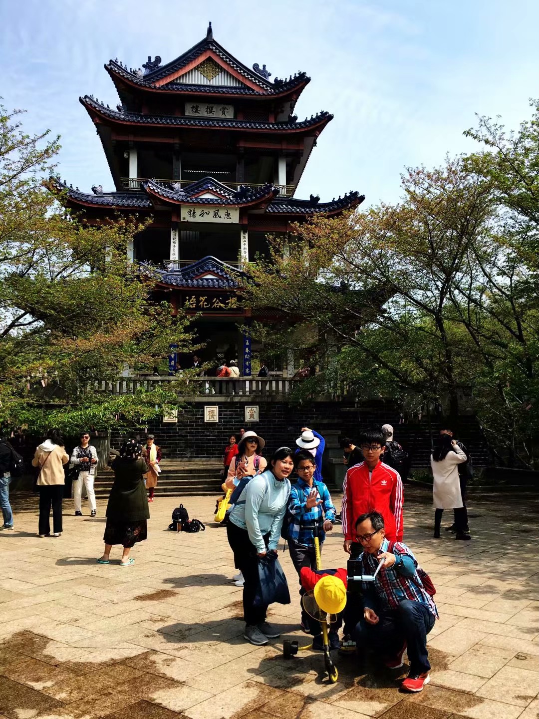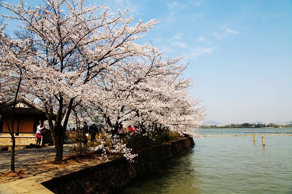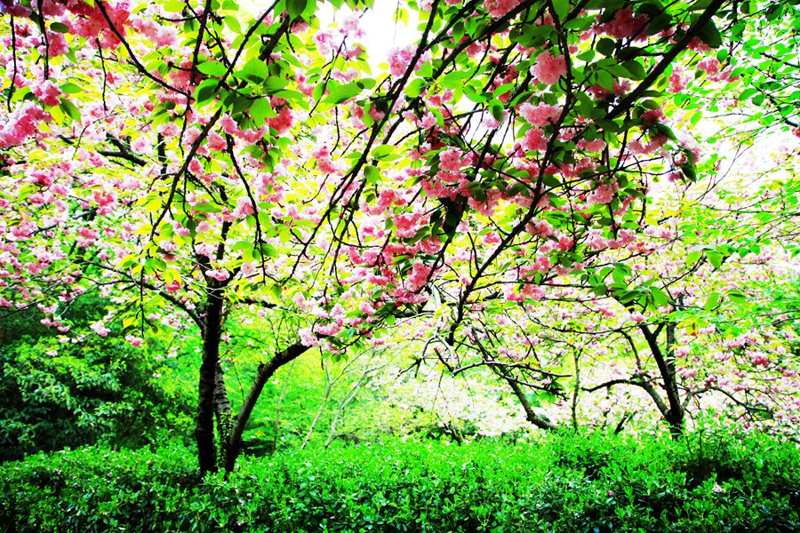 以前我们这里没有樱花,现在也有种植,但开的花朵都很大,挂在树上不灵动,远没有无锡的樱花漂亮。那次来鼋头渚赏花的人实在是多,红男绿女树影斑驳,儿童玩耍,老人欢笑,人海花海,相映成趣。人们品味樱花,领略樱花的纯粹和洒脱,享受柔软的快乐时光。樱花谷,在太湖缥缈山水的映照下,恍如仙境。这次重游樱花谷,虽说没见上次的盛况,但也见到了几株晚樱,还有那座新修的宝塔。记得2012年来时,尚未见有宝塔。樱花谷有了这座宝塔更漂亮了。