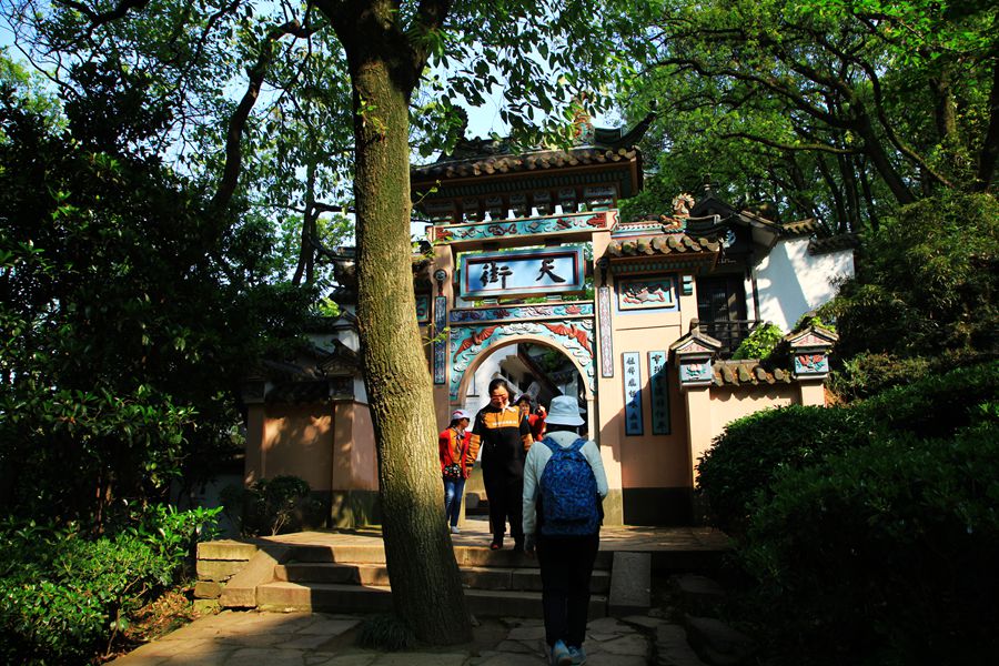 岛上树木葱茏,曲径通幽。再加上一个个仙风道骨的神像、雕塑,让人觉得新奇、神秘。我爬上天阶,来到灵宵宝殿,威猛的四大天王让我暗自心惊,庄严的玉皇大帝让人肃然起敬。登临峰顶,面对一抹青山,飞檐峭壁;一湖碧水,白帆点点,我仿佛置身于世外桃源、人间仙境,心情豁然开朗。