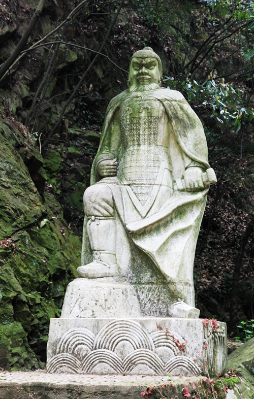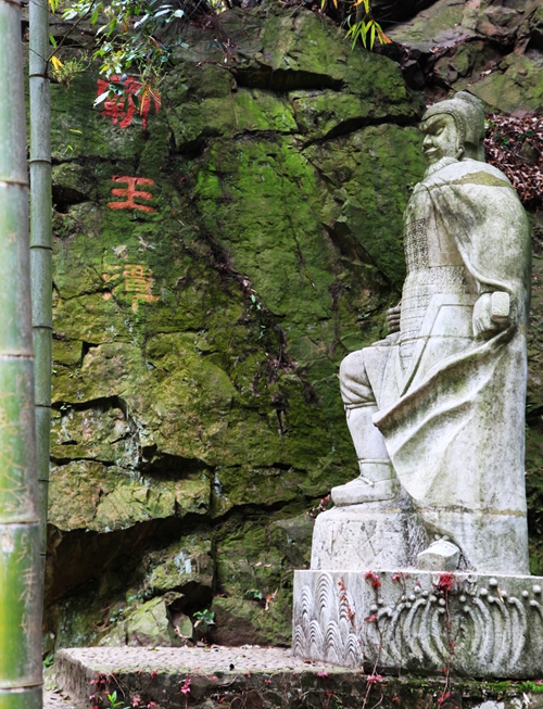 霸王潭不深,约15厘米,水从石上淙淙流过。山崖有唐、宋石刻,潭前建有沐浴亭、枕流亭、茗香桥等景观。一块大石上刻有李清照的:生当作人杰,死亦为鬼雄。至今思项羽,不肯过江东。在亭的上方,透过竹子,隐见项羽雕像,这尊雕塑伟岸高大,目注四方,展示了大英雄气概。我站在雕像前,久久凝视这位大英雄,他的盖世武功,他的远大志向,都因自负而付诸东流,乌江绝命兮,令世人为之惋惜。