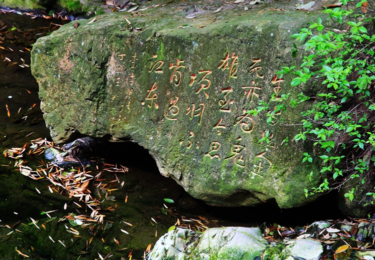 第二天,我们顺着蜿蜒的山路去霸王潭参观,山道两旁修竹参天,地上新长出的竹笋冒着尖尖的芽。山峦叠翠,空气清新,环境优美,真是休闲度假的好去处。到了霸王潭,不看不知道,看了吓一跳,原来此霸王是鼎鼎有名的楚霸王项羽。相传项羽曾在此饮水沐浴,并留下膝盖深印而得名霸王潭。
