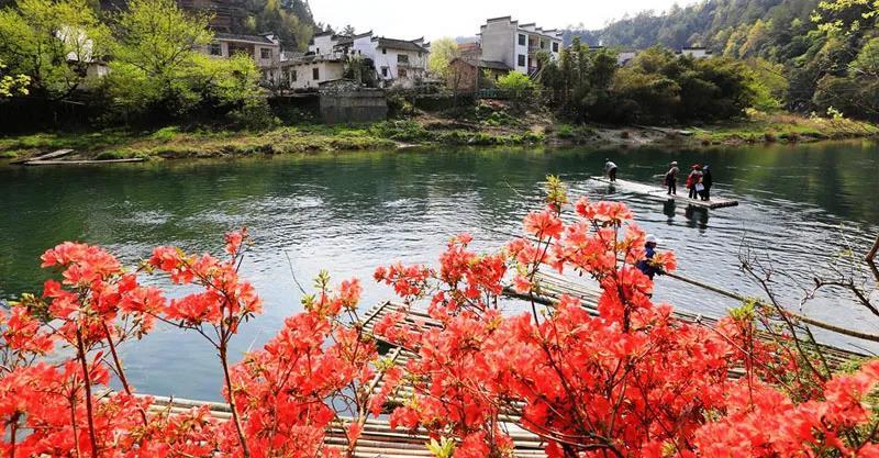 安徽省黄山市休宁县流口镇茗洲村始建于宋代,是一个有着千年历史的传统古村落。走进茗洲村,一条绕村而过的清澈山溪映入眼帘,春天的时候,溪边的映山红连缀成片、花开繁茂,是一道亮丽的风景线……