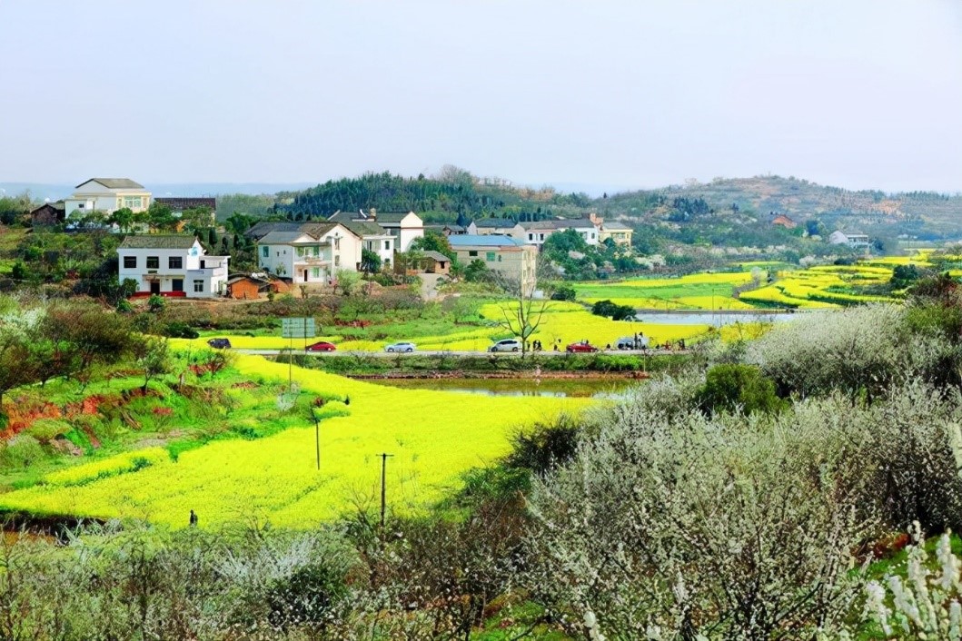 从石塘至萱洲镇的公路两侧田野、山坡上是一望无垠的金黄色的油菜花,房前屋后还点缀着不少的桃花、梨花,车行在公路上宛如鱼儿荡漾在花的海洋中。
