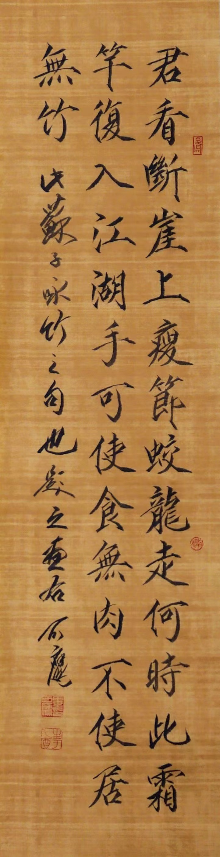 今早为叔叔毕庶健画的竹子配上北宋 . 苏东坡的诗:君看断崖上,瘦节蛟龙走。何时此霜竿,复入江湖手?可使食无肉,不可居无竹。