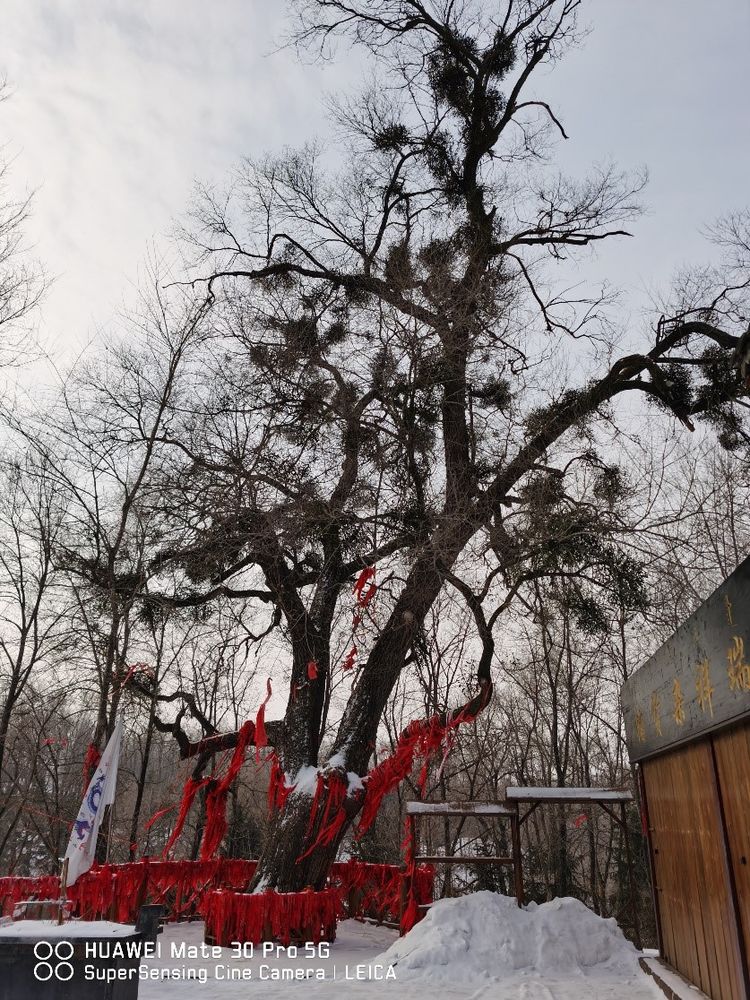 正白旗衙门门前的老榆树据说已有500年历史,它见证了清王朝的发展,被称为“神树”。树上的”鸟窝”是一种寄生植物—冬青。