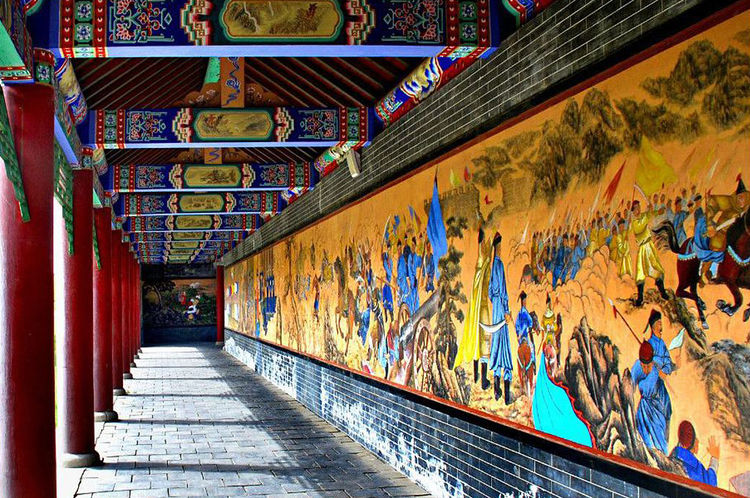 是我国目前最长的半封闭式壁画长廊,长廊全长560延长米,展示了努尔哈赤一生中的丰功业绩和满族发展的恢宏历史画卷。