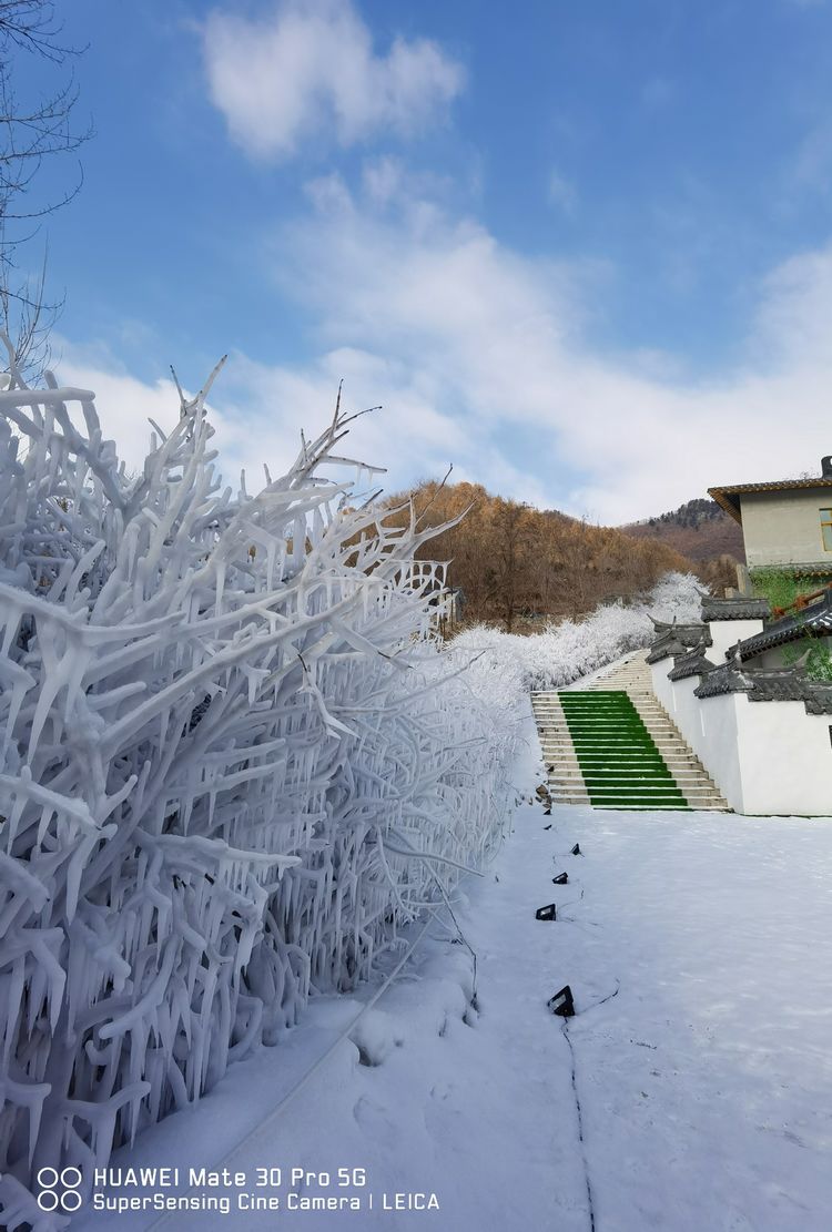还有一处人工用热水喷浇而成的雾凇,引得不少就餐者拍照