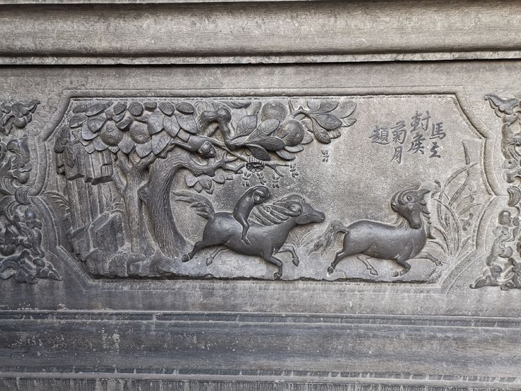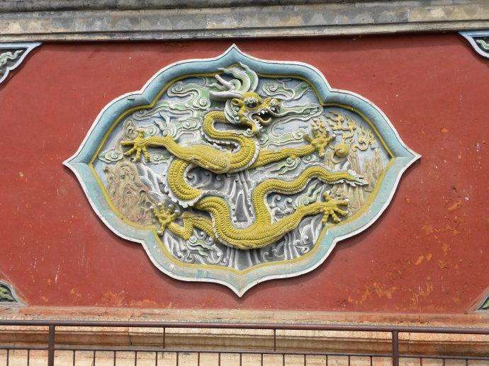 启运门两侧的缭墙上有四组“五彩云龙袖壁”,它的材质是由淘土烧制而成的,既砖雕。这种泥瓦雕塑的仿琉璃照壁,在历代皇陵中仅此一处,也是永陵的建筑特色之一。