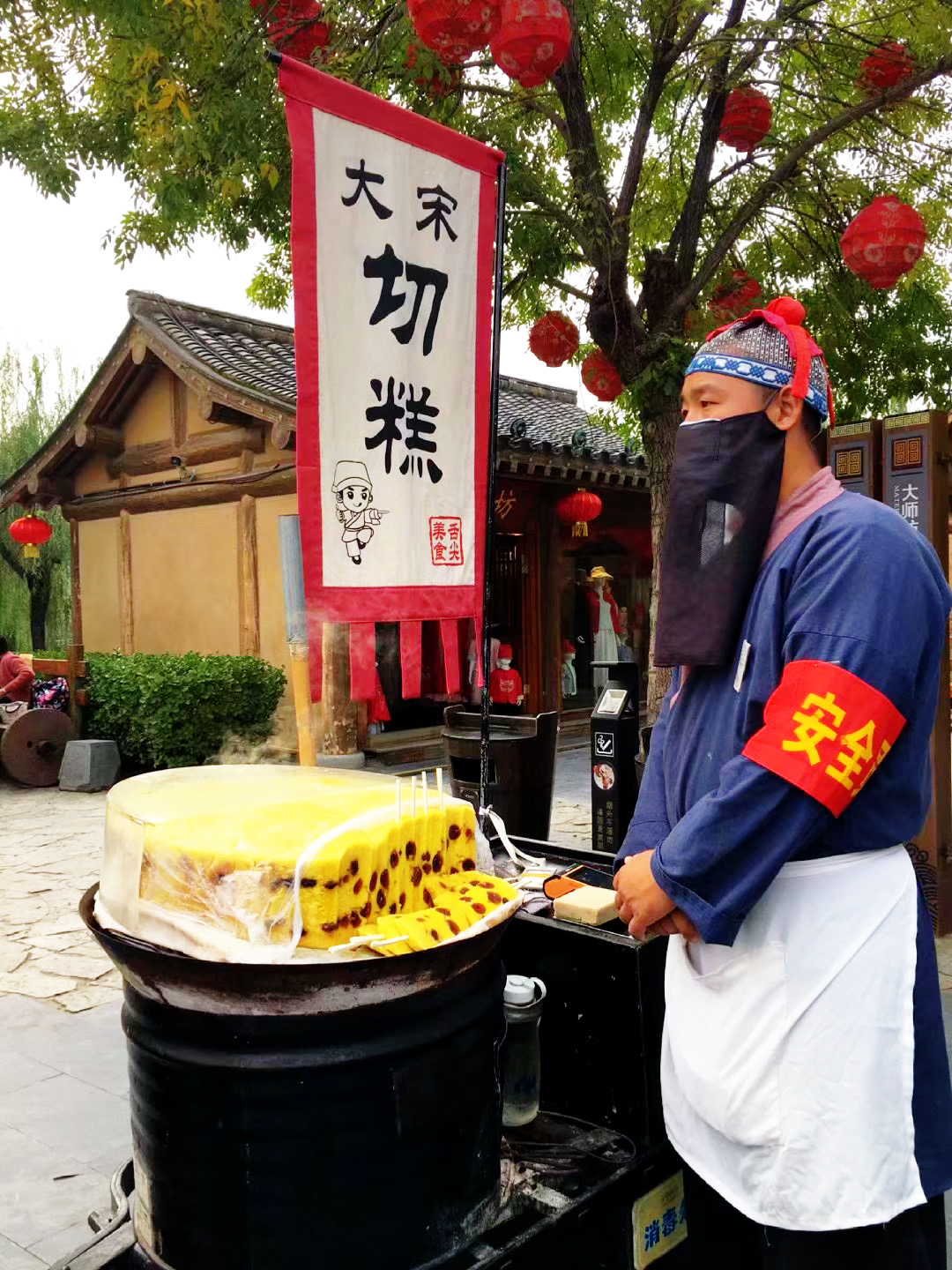 人说,赶的早不如赶的巧,清明上河园里也是因为重阳节的缘故,六十岁以上的老人免票进园。很幸运,为我节省了120大洋。等妹妹买好门票,步入清明上河园里,看到满园的古装服饰人员,还有大宋年糕摊的商贩,就像置身于宋朝市井生活里。清明上河园是清明上河图的原创之地,那个真迹清明上河图我在台湾古宫博物馆里见过。今天来到现实版的清明上河园,仿佛“一朝步入画卷,一日梦回千年”的感受。