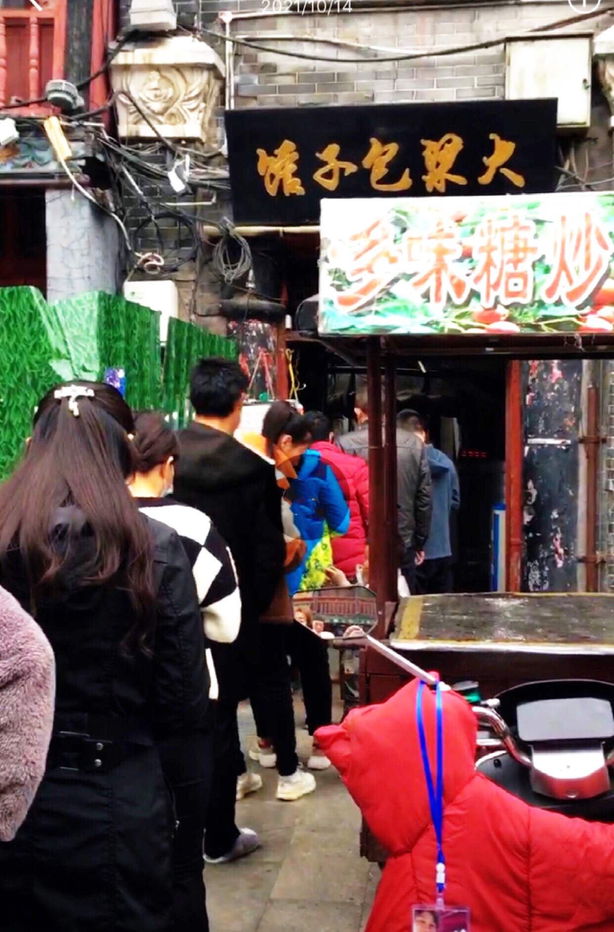 第二天早起,天阴,雾蒙蒙。按原计划游览龙亭公园。因为,十月龙亭公园有菊花展,为此,我带了拍花的镜头。查高德地图,龙亭公园不太远,我们决定步行。沿着鼓楼右侧,行到书店街,街边排着长阵。近前才知是买早点的人。我顺着队伍往前看,那卖早点的铺子实在简陋,设在一处居民楼的门洞里,里面黑乎乎的。门楣上挂着“大梁包子馆”几个大字。我很是奇怪,这是啥包子这么吸引人?