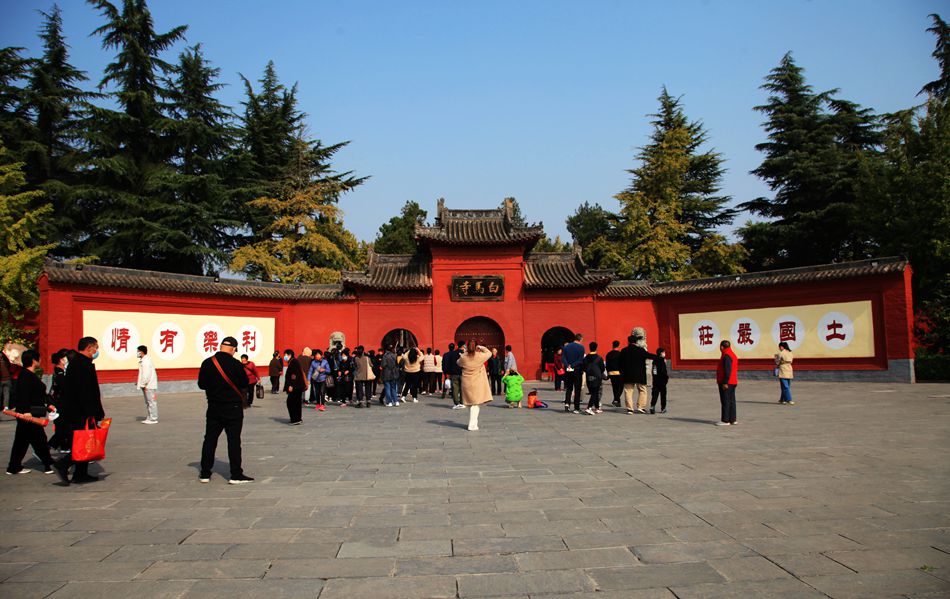 这天来白马寺烧香礼佛的人真多,整个寺院香气缭绕,人流如织。这座寺院历史厚重,是佛教传入中国后兴建的第一座寺院,故被誉为中国第一古刹、世界著名佛教寺院之一,它的佛教意义、历史意义、文化价值都是无与伦比的。走进寺院,了解白马寺的前世今生,点上一炷佛前香,表达千万敬意。白马寺并不是很大,比起其他国内大寺院要小很多,可它的意义在于它的历史,它的沧桑,它在佛教史上的作用。它多舛的命运也是其他寺院能比的。读白马寺的历史,你就会被它的命运而叹息。几度毁之,几度兴建,它的兴衰始终于国家、与民族的命运紧密连在一起。