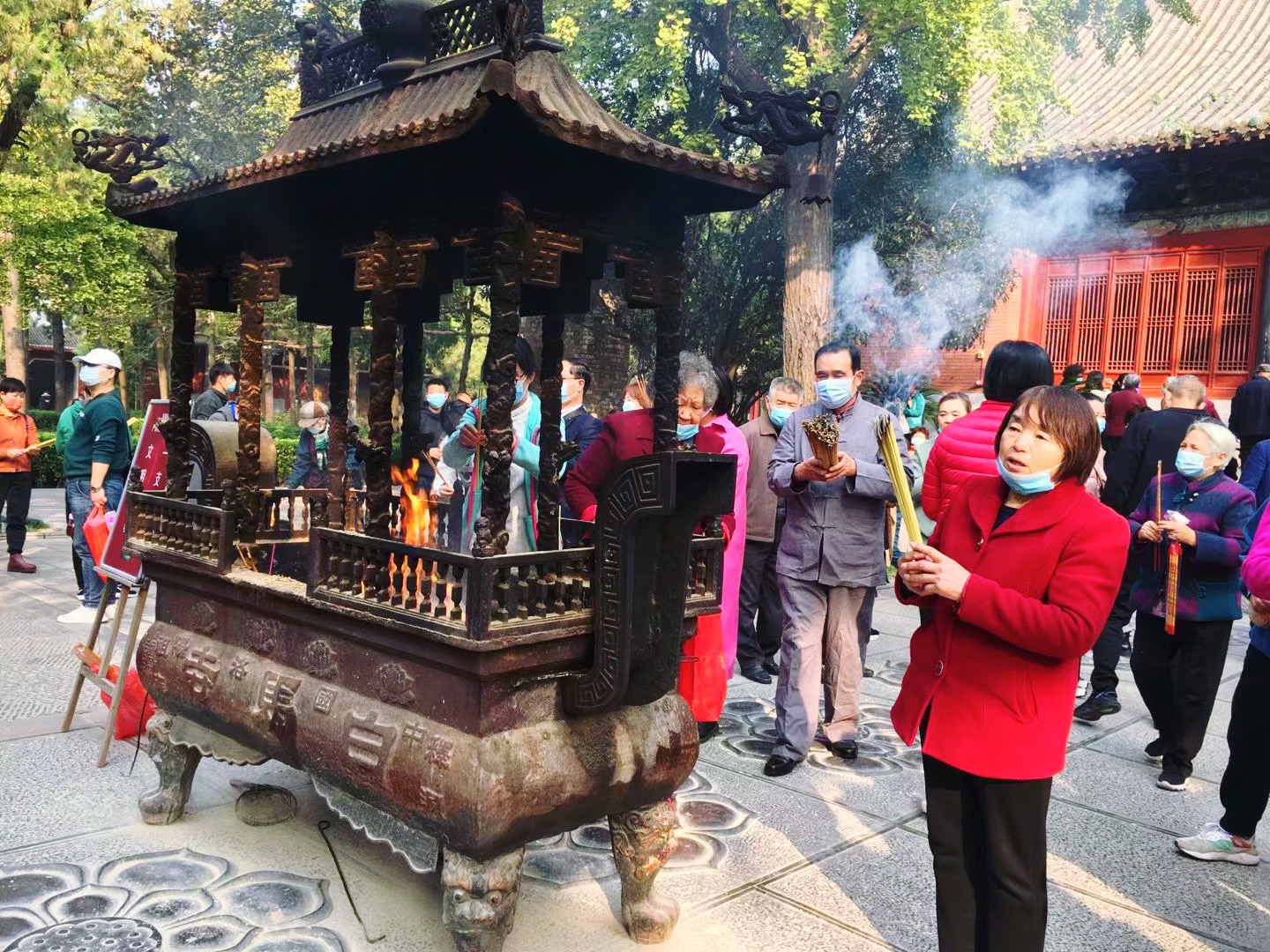 到洛阳首选龙门石窟和白马寺。因龙门石窟需提前预约,上周五我们就开始预约,只约到了下周六才能进景区。第二天早起,在街上吃完早点,门前乘公交去白马寺。虽说景点较远,需一个小时的车程,但早班车人少有座位。到了白马寺才知道,这天是观音菩萨出家日,真是来的早,不如赶的巧,遇上这么个好日子,怎不让人喜悦呢。南无阿弥陀佛!感恩菩萨护佑,一路顺风顺水到达洛阳。为此,我请了一大札香,在大雄宝殿礼佛!以表达对佛菩萨的尊敬!