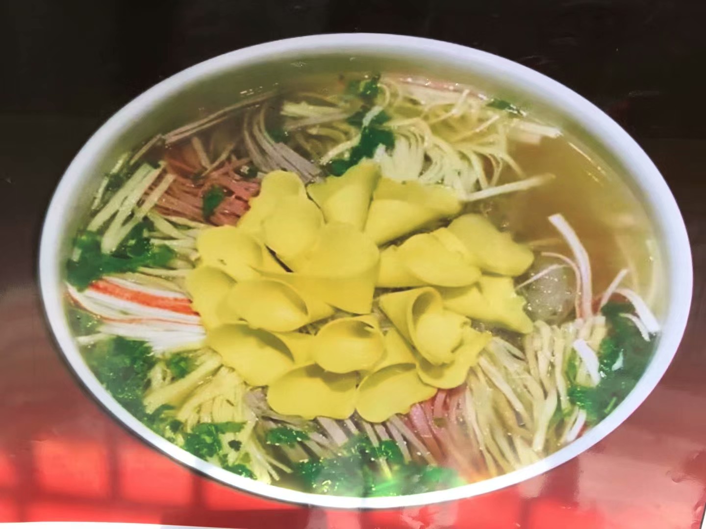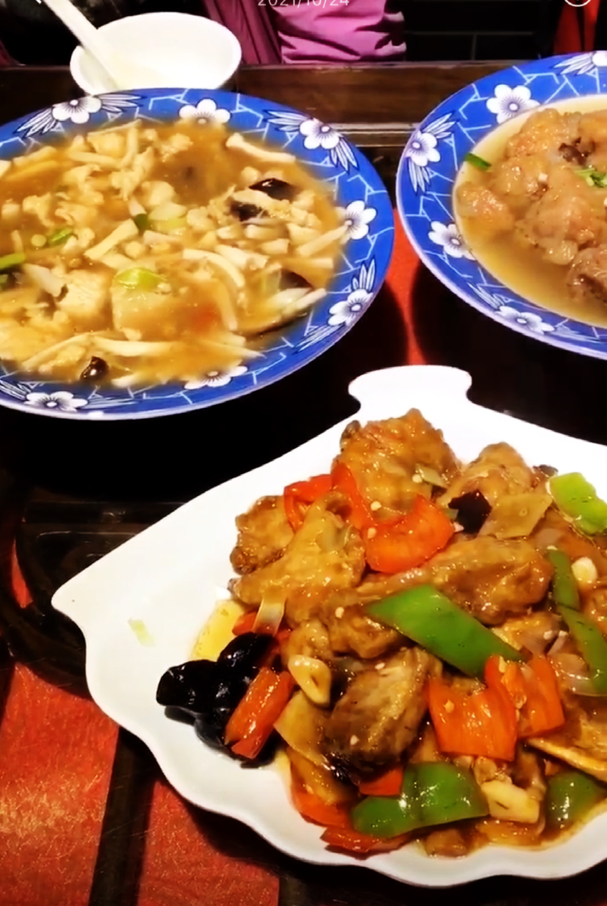 一会端上桌,都是大盘大碗,汤汤水水,占满了桌面。我和妹妹面面相觑,这量实在是大,我们根本吃不了。听人说洛阳水席好吃,可我感觉不怎么好吃,可能是个人口味的原因,我和妹妹都不喜欢,仅吃了一点点,全浪费了。好在不贵,总共82元。后来我看别人桌上端了一盘非常漂亮的菜,我问服务员这是啥菜?答,这是牡丹燕菜,我说刚才你怎么不给我们点这个呀?服务员说,这道菜是用萝卜丝做的,我以为你们喜欢吃肉不吃素呢。乖乖,和我们想的正相反。