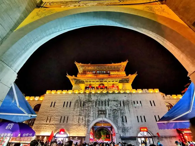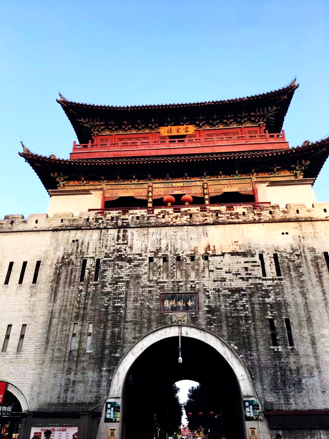 这条老街,西起丽景门,东至鼓楼,中心部分为十字街,在这里可以体验洛阳现在的繁华场面,可以吃到当地各色风味美食,这里几乎是洛阳的美食天堂。洛阳老街是洛阳城历史文化的缩影,傍晚十分,走在老街上,闻着烟火气,看熙熙攘攘的人群,听河南方言的“中”,感受异地民俗风情,别有味道。当行至丽景门下,远远的看见了半圆型的城廓及巍峨耸立的城楼。据说,当年的丽景门曾是帝都百官万民祭祀神灵、祈福纳祥之处。