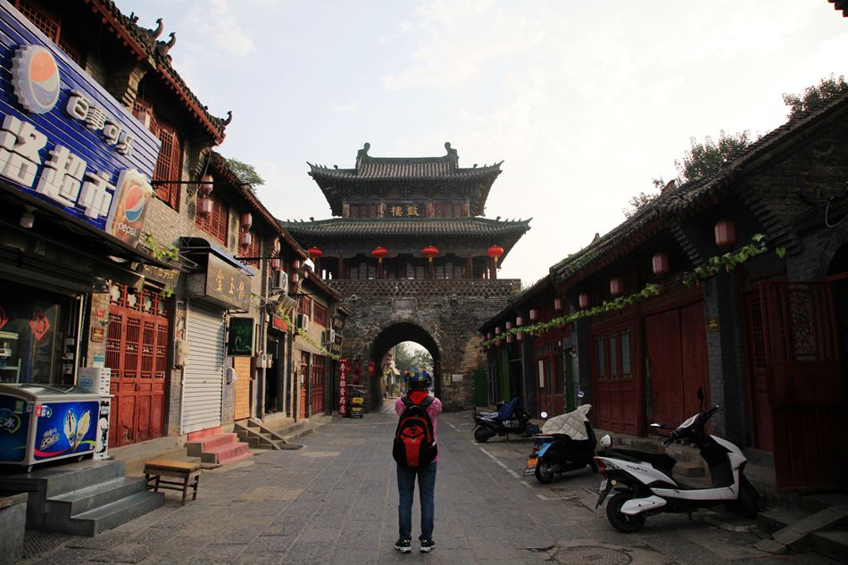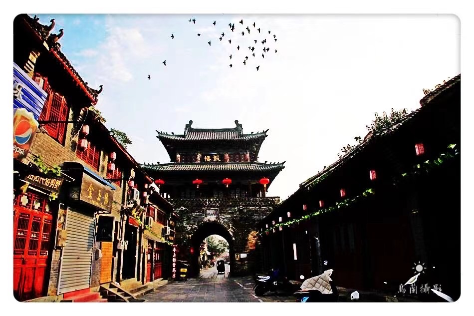 洛邑古城是洛阳网红打卡地,这里古韵悠悠,拥有众多历史遗迹。第二天清早,我们穿过十字街去洛邑古城,是与昨晚去丽景门的反方向,正好可以观赏到十字街的另半条街。与夜晚的喧嚣不同,老街的早晨静谧安祥。道两旁的店铺都关着门,只有很少的几家卖早点的。我们在老街吃过早点,一路溜达着到了古城的东门。早晨的阳光非常柔和,照的古城楼就像一幅画,恰好有一群鸽子飞过城楼,远远望去,就像一架架银灰的飞机。