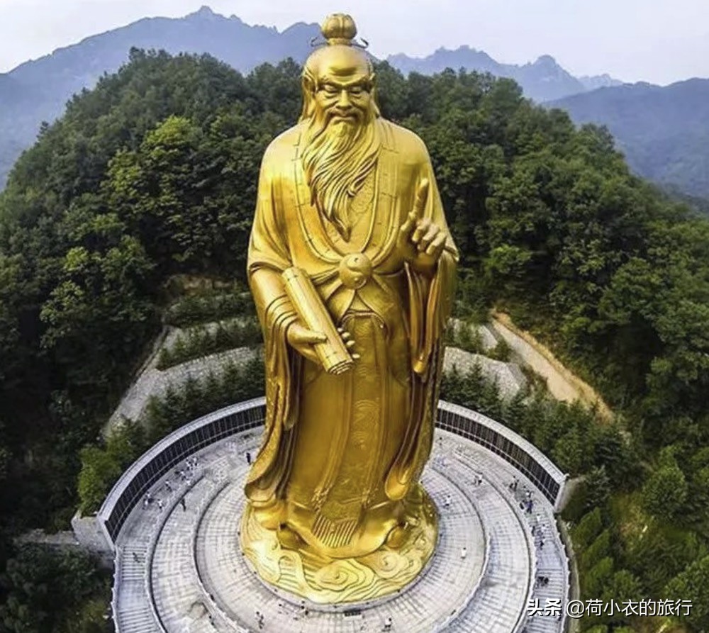 老君山景区内的老子铜像,于2014年被大世界吉尼斯收录为“大世界基尼斯之最―最高的老子铜像,像高38米,面部高6米,用360吨锡青铜铸造。