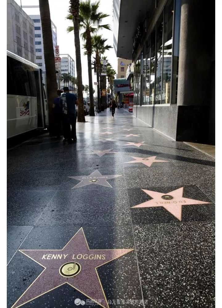1958年加州政府为了提升文化、娱乐、影视行业的地位,彰显和纪念这些行业有杰出成就的名人,在好莱坞大道的人行道上镶嵌有他们名字和黄铜星星的五角形水磨石板,其中圆形铜板上的图案,代表着他们的贡献所属的领域。