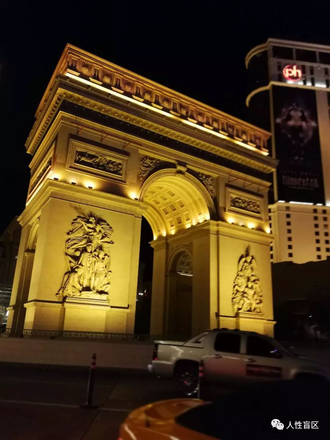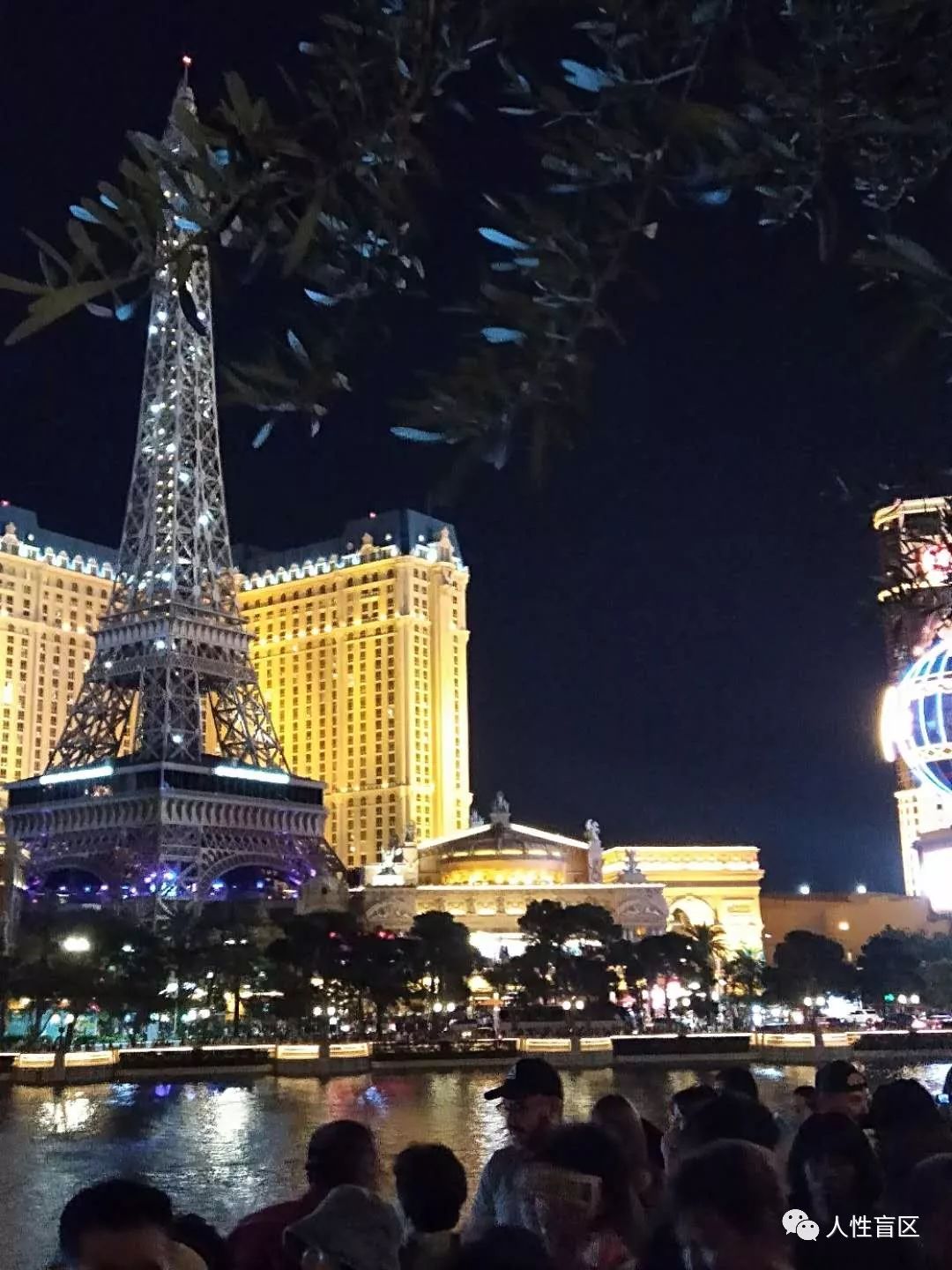 酒店门外每晚都有巨大的免费音乐喷泉,每15分钟滚动喷放,人潮汹涌、人流不断;喷泉对面翻版的埃佛尔铁塔和凯旋门地标紧邻。