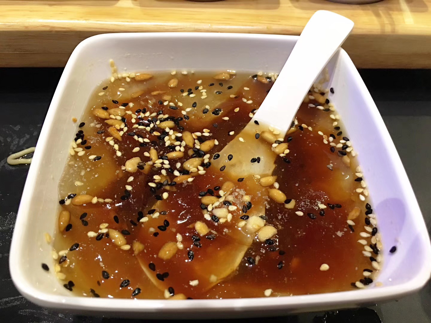 约二十分钟排上了我。走进店里,服务员把我领到桌前,递上菜单让我点菜。原来丝娃娃是这家店的招牌菜。所谓的丝娃娃是用各种素菜切成的丝(如:土豆丝、黄瓜丝、胡萝卜丝、莴苣丝、豆芽)等等,五颜六色共十几种菜。再用小面饼蘸汁裹着吃,就像北方吃烤鸭那样。据说贵阳最正宗的丝娃娃就是这家店,怪不得人这么多呢。我点了这份丝娃娃,又点了一份玫瑰冰粉和洋芋粑共计57元。丝娃娃的菜不计数,可自己随意添,只有面饼是计数的。在这炎热的天气里,吃一顿丝娃娃,喝玫瑰冰粉,别提有多爽了。