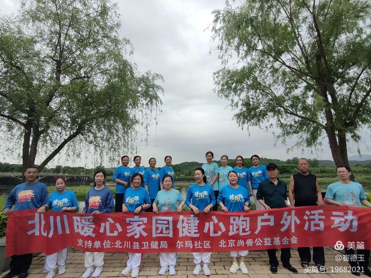 4月29日上午十点,北川尔玛社区暖心家园的兄弟姐妹们,身穿北京尚善公益基金会提供的运动服,来到北桥的河堤上,参加庆五一健心跑活动!