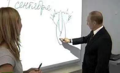 普京视察某中学时作画留念