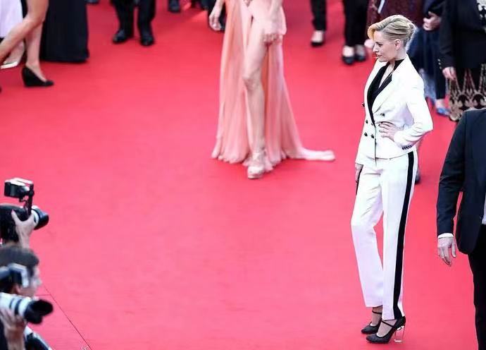 论身材,她和年轻貌美的名模Doutzen走红毯,片肤不露,单凭一套黑白裤装,就秒了全场。