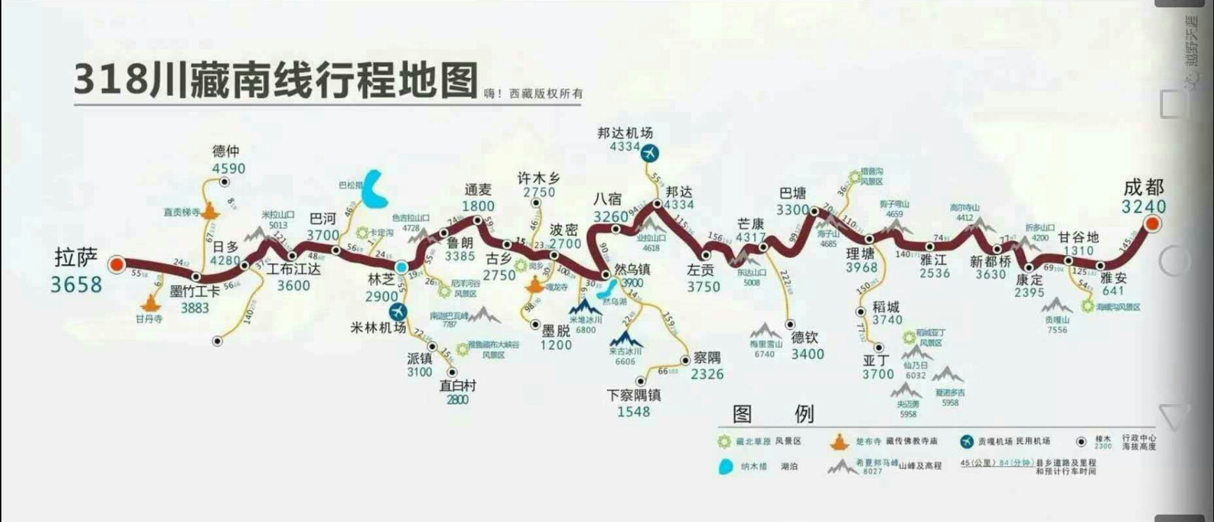林芝到拉萨近两年修好了林拉高速,是不收费的,也可以走老的318国道。翻过米拉山,经过工布江达和墨竹工卡两个县,就到达日光城一拉萨。