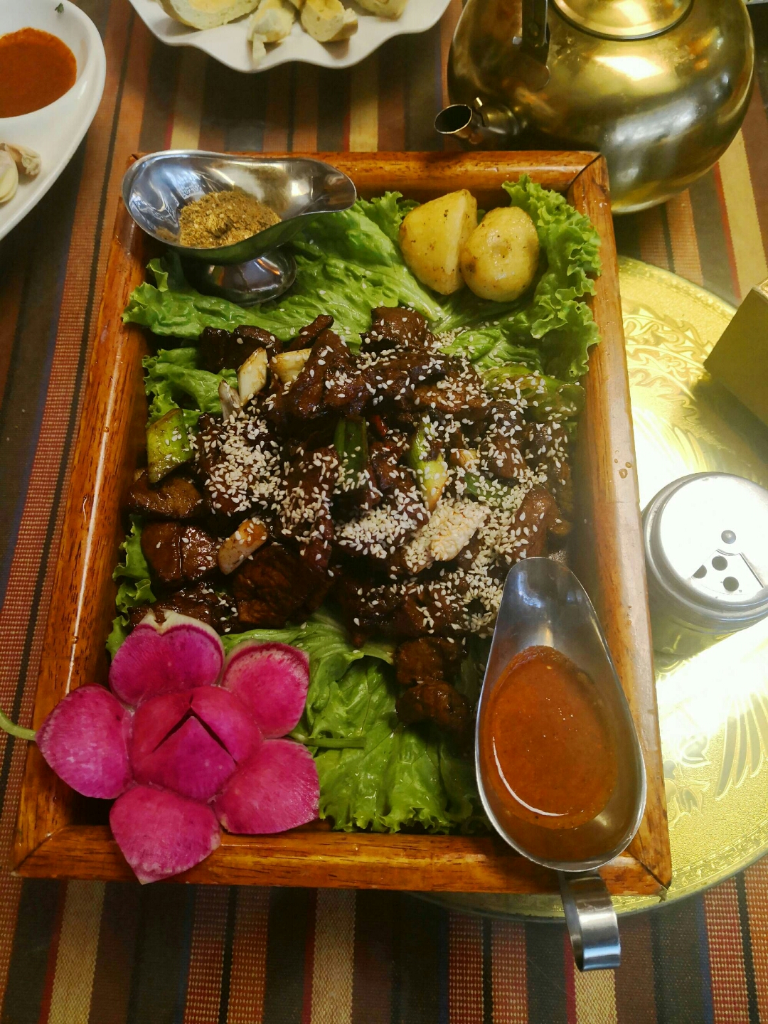 拉萨给我印象最深的就是布达拉宫,和体验藏餐以及藏式早茶了。当然,还有八廓街大昭寺也值得逛逛。布宫让人震撼的是蓝天白云下面那肃穆雄伟而庞大的宫殿,还有宫墙上那红白相间的颜色,以及那些虔诚的朝拜者。我们体验藏餐是在当地藏民家中,主人卓玛介绍了她家的历史情况,并给我们献上洁白的哈达。藏餐也是很丰盛的,有牦牛、羊肉、糌粑呵,还有“青稞酒,酥油茶,会更加香甜”……