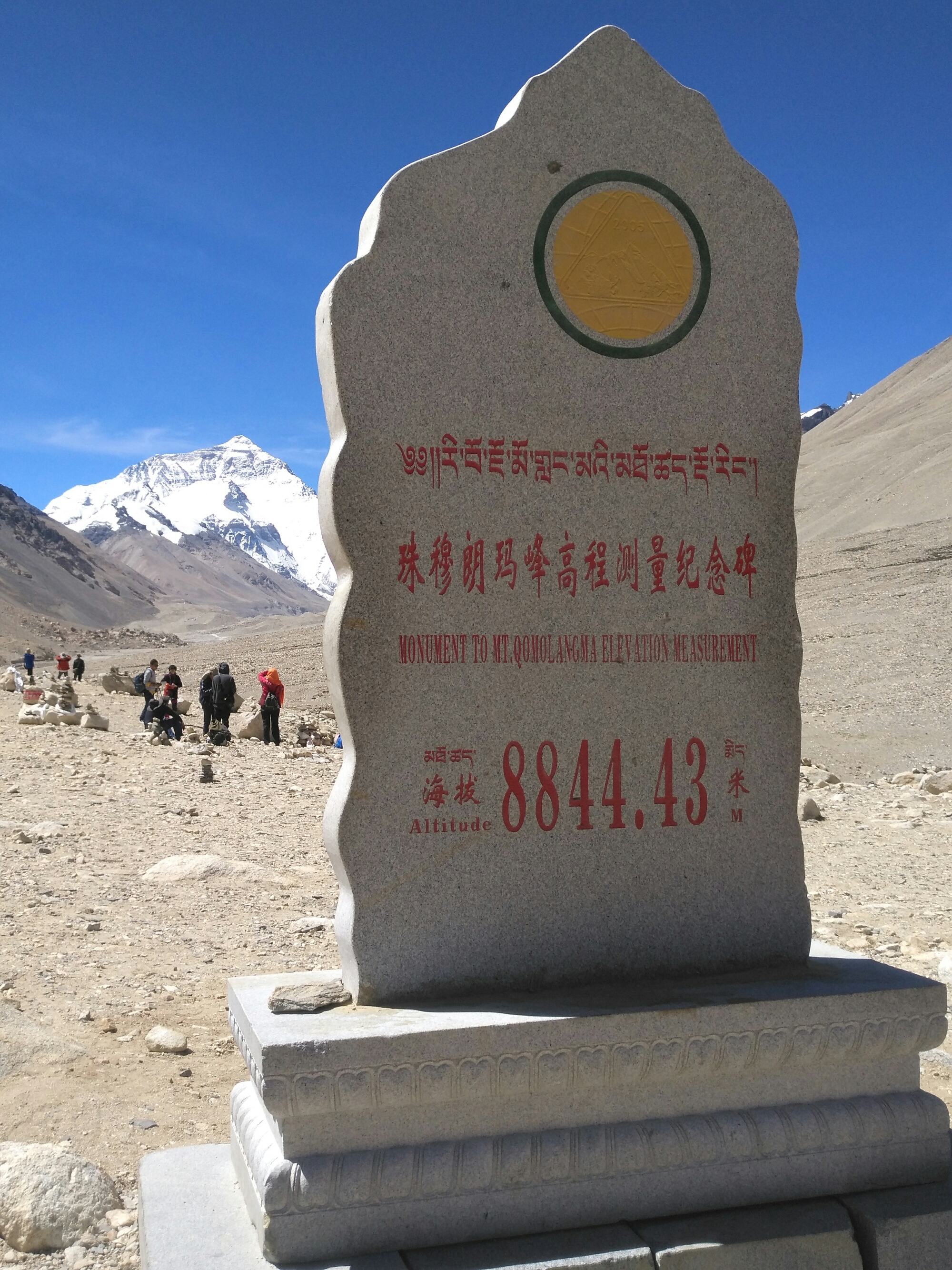 第二天很快就抵达珠峰国家公园,一路上都是高山纵横,山路曲折。远眺喜马拉雅山脉绵延不绝,甚为壮观。交下买路钱进公园后,需换乘当地大巴直到珠峰大本营。一下车,看到的是珠峰脚下的古庙绒布寺和路旁大本营的帐蓬,前方不远处就是耸立的雪白的珠穆朗玛峰。
