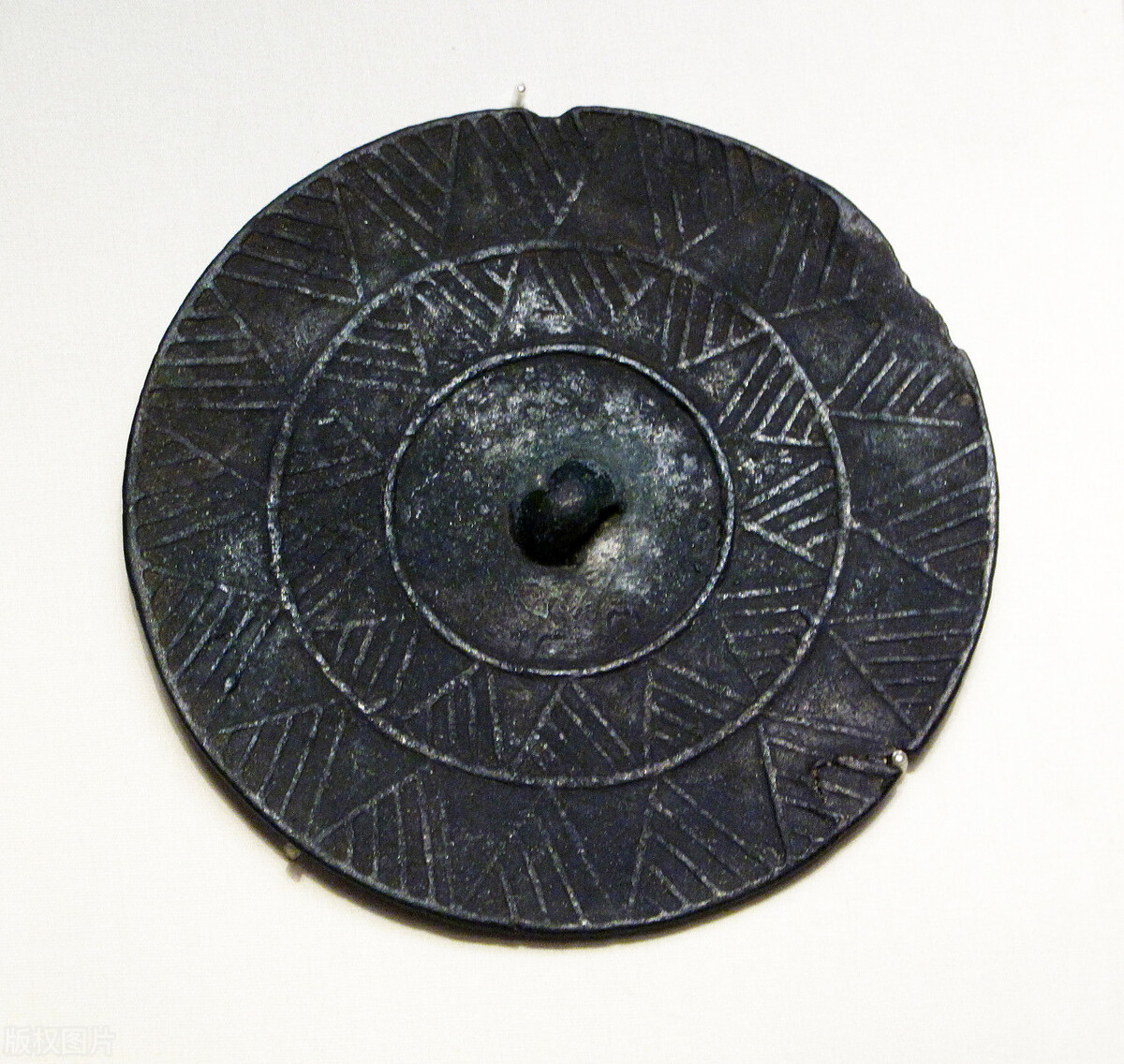齐家文化拥有数量众多、保存精美的铜器。尕马台遗址曾出土一件铜镜,直径 9 厘米,厚 0.4 厘米,一面光平,一面饰七角星形纹饰,保存较好,这一面铜镜被称为“中华第一镜”。