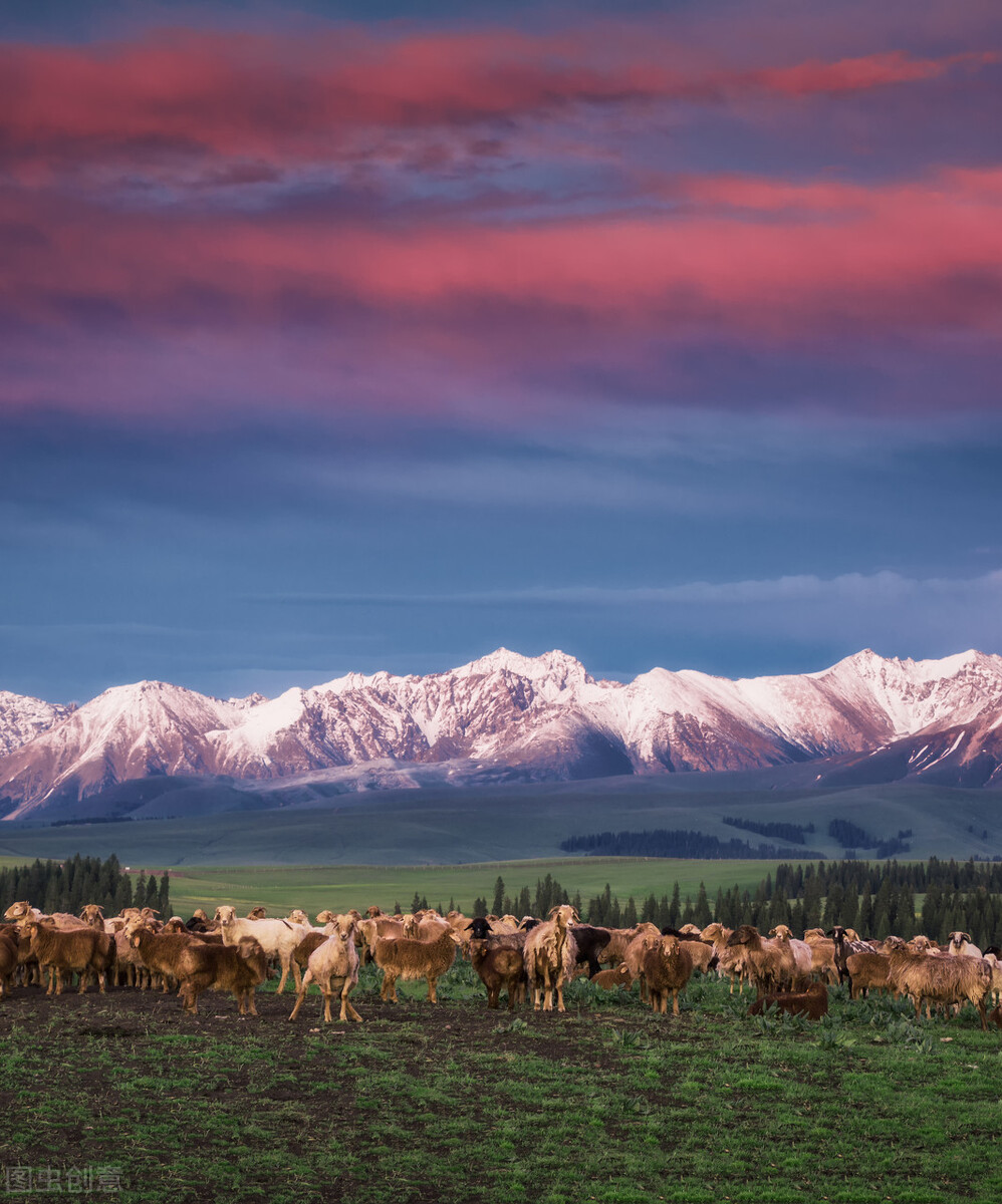 在伊犁,随处可见丝滑如毯的辽阔草原,墨绿色的云杉如斑纹一样交错分布,山间牧马往来、牛羊成群,“天似穹庐,笼盖四野”的草原风情唾手可得。