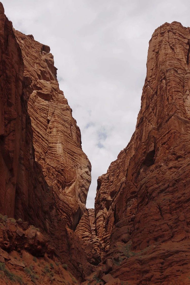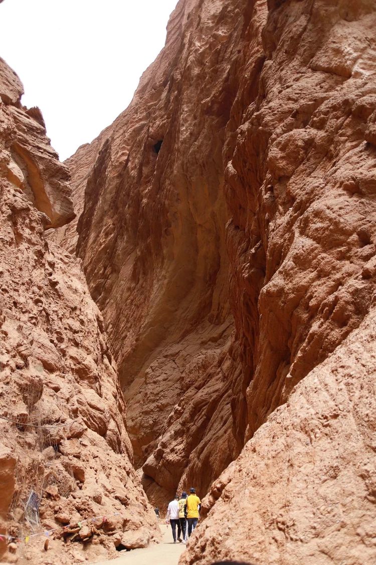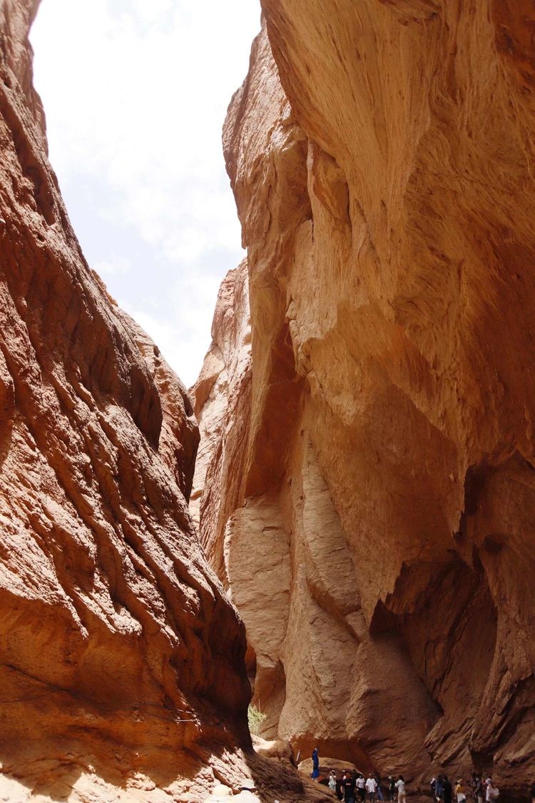 峡谷最宽处53米,最窄处仅0.4米,只能一人通过。两侧山峰对峙,时而阳光倾泻谷底,行至深处也不乏温暖;时而阴森幽暗,头顶唯见一线天。黄昏时分,光影暗动,加之穿山而过的强风,千姿百态的山体忽然活灵活现起来,更增添了神秘之感。