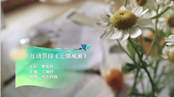 《云烟成雨》是由“房东的猫 ”演唱的歌曲,是动画《我是江小白》片尾曲。《我是江小白》讲述的是一个离别与重逢的故事,《云烟成雨》的作词者墨鱼丝在网易云音乐里这首歌的留言是“离别是为了更好的相遇。”