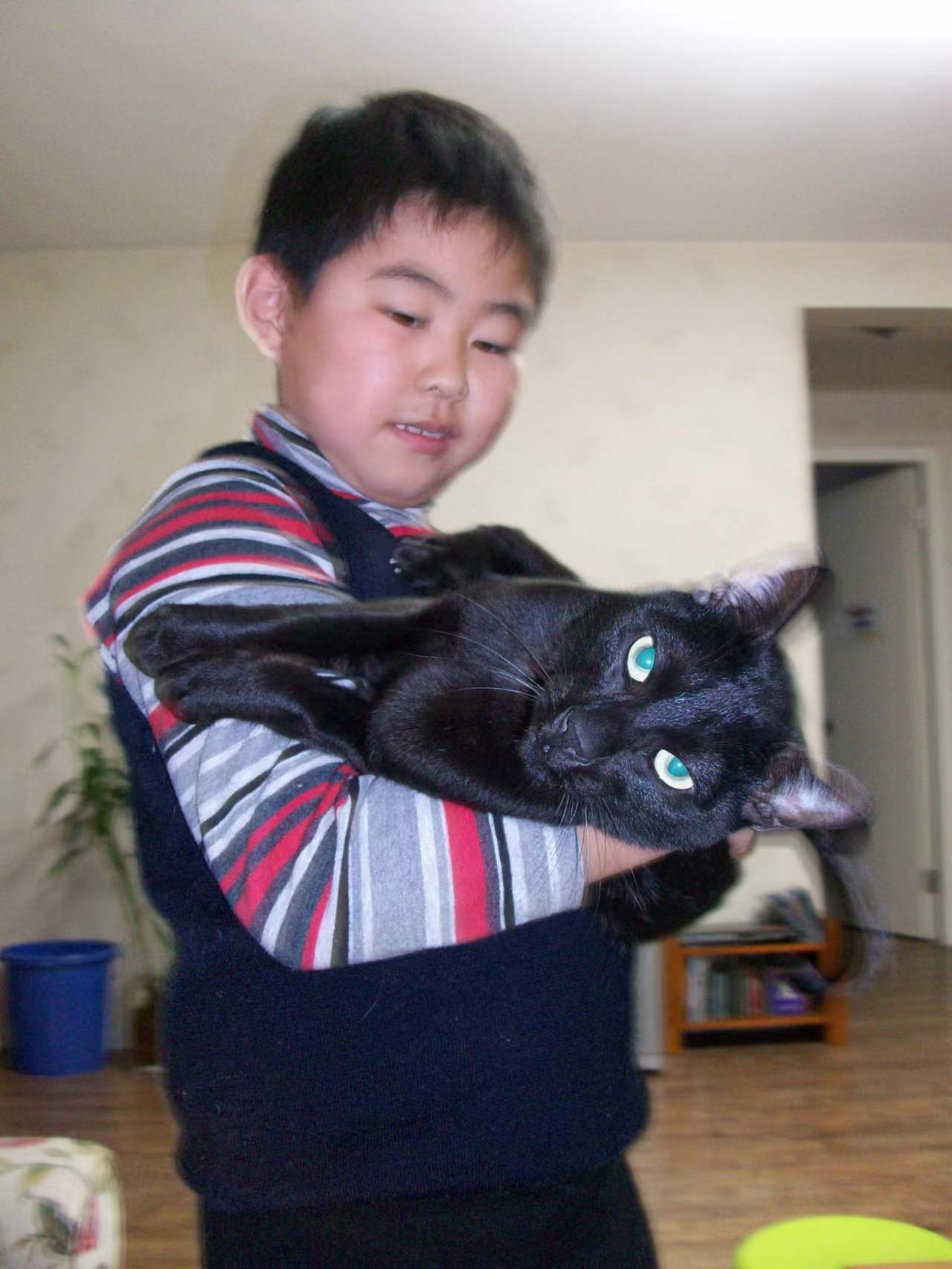 再来说说儿子珍而重之委托我,一定要亲自送送的“来乐”是谁—它是儿子五岁时,我一位朋友不想养,而送来我家的一只纯黑色的暹罗猫。