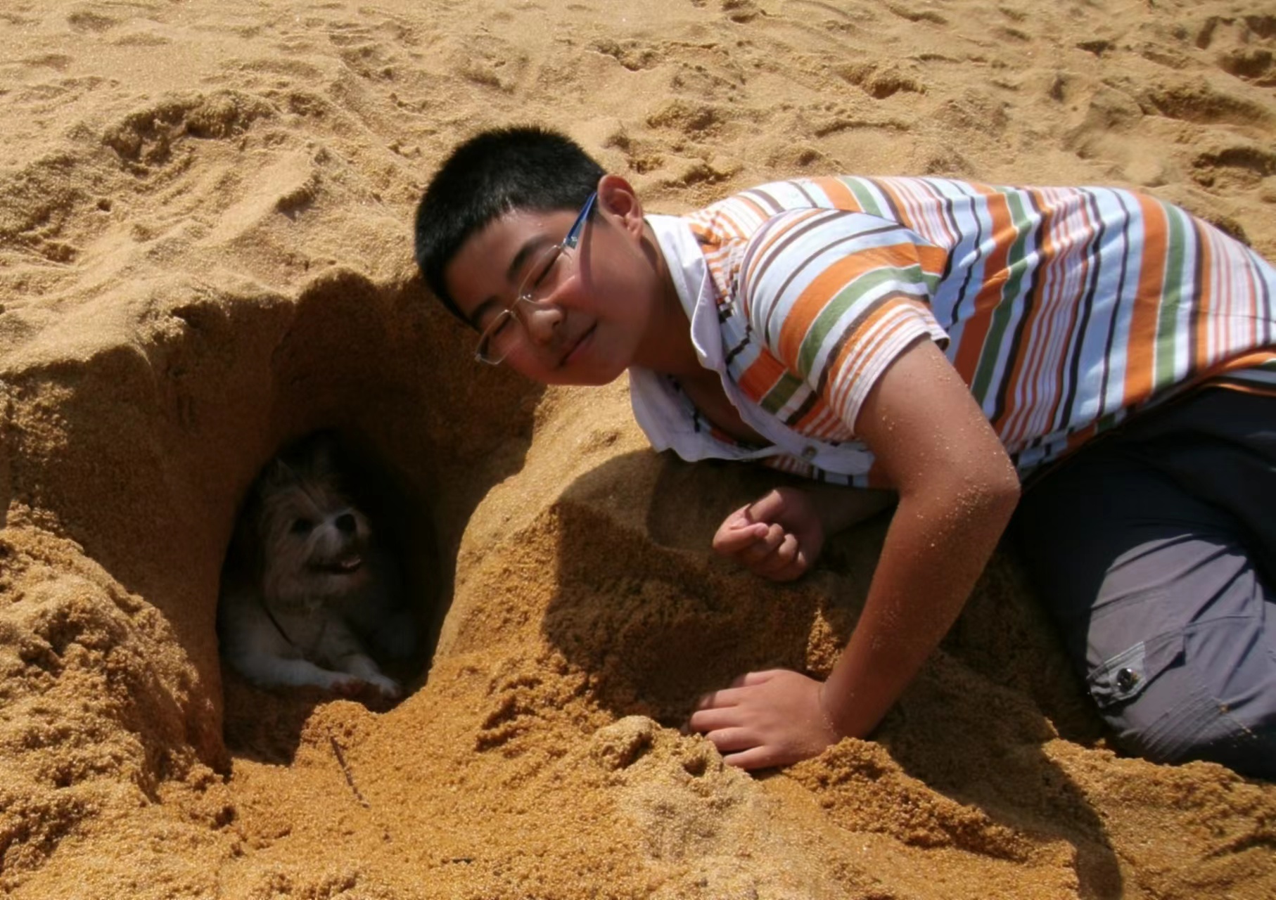 正是因为呆宝这样的聪明,所以它特别明白谁才是它的主人,虽然儿子只要有空就是他来遛狗,但是呆宝只听我和孩子爸爸的话,对儿子总是有点不服管。所以儿子很气恼,觉得得不到应有的尊敬,一有机会就会小小的“欺负”呆宝”一下,从而获得一些恶作剧的快乐。不过虽然会偶尔“欺负”呆宝,可是如果呆宝有什么不舒服或者被爸爸打骂,最先保护它抚慰它的,那一定是儿子,他们就是这样“相爱相杀”打打闹闹的互相陪伴着成长。