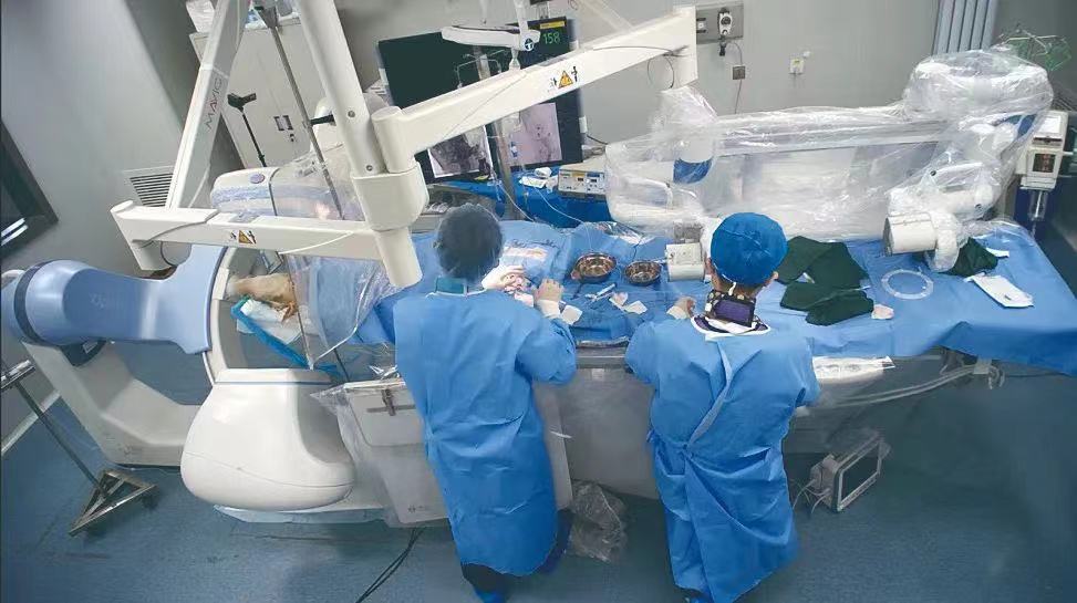 该机器人采用主从操作方式,由首都医科大学宣武医院神经外科主任医师马永杰在主端操作,成功完成了部分血管造影。