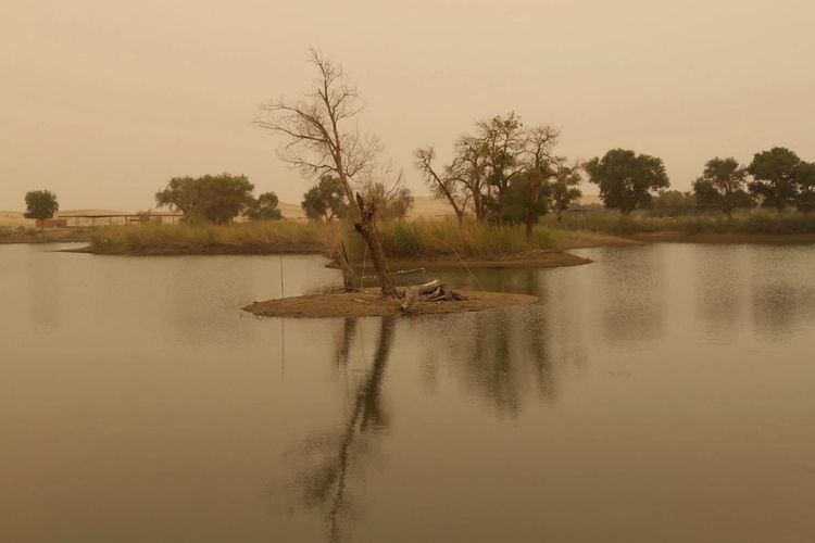 神女湖是罗布人村寨较大的海子,她居于塔克拉玛干沙漠腹地的道路沿线,像蓝宝石一样闪烁着光芒,湖水一年四季不减,碧波荡漾,充满了神秘色彩。