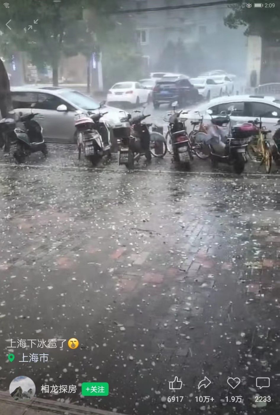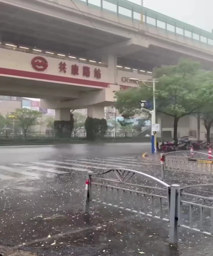 这次不期而遇的冰雹是因为上海连续很多天的高温,遇到了北方的一股冷空气所导致。