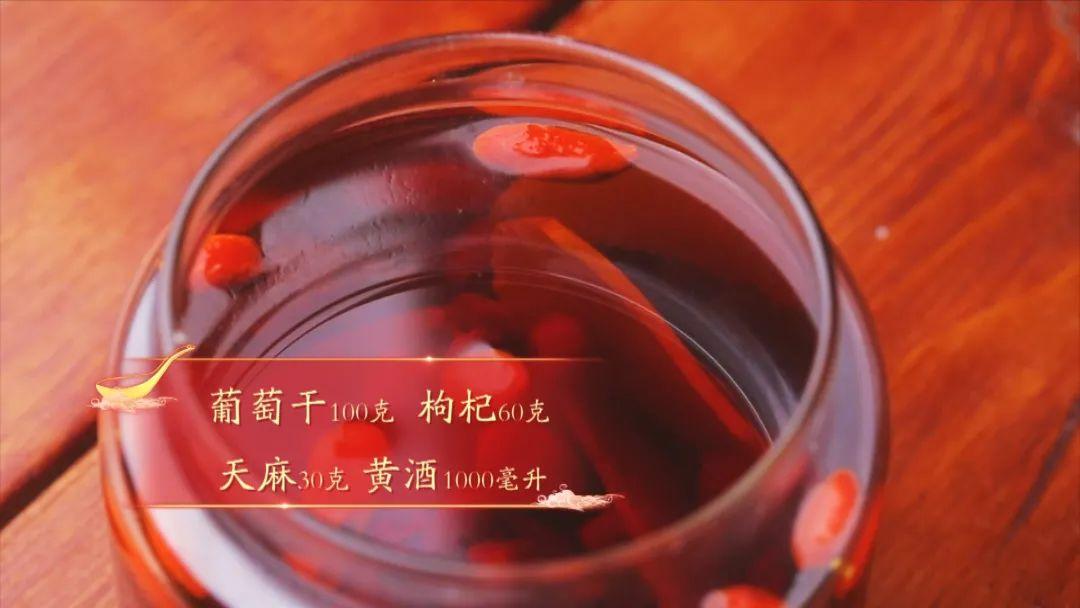 食材:葡萄干100克、枸杞子60克、天麻30克、黄酒1000毫升。