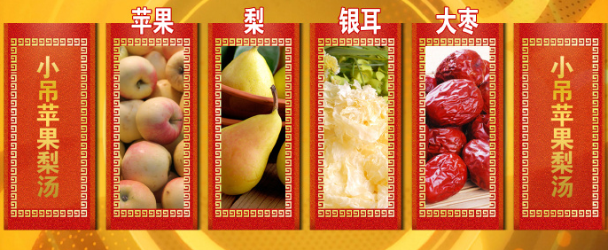 梨子有降火、润肺、化痰、止咳功效;银耳富含银耳多糖。滋阴润肺,增强人体免疫能力;苹果做熟后可以软化纤维,对胃肠道刺激更小。酚类物质还会增多,有利于保护心脑血管、降脂降压。