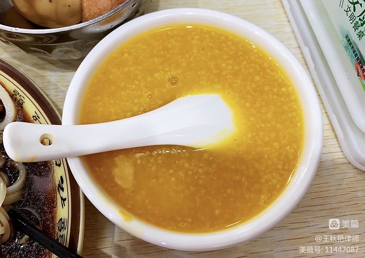 边排队边看墙上的文字,知道了有辣和不辣两种口味,还有大中小碗之分。然后又看到当地人吃面的时候,旁边还有一小碗粥,想来是在吃的比较辣的时候,喝一口小米粥缓和一下。于是赶紧依葫芦画瓢,也要了小份的蒸面、小米南瓜粥、一个茶蛋。