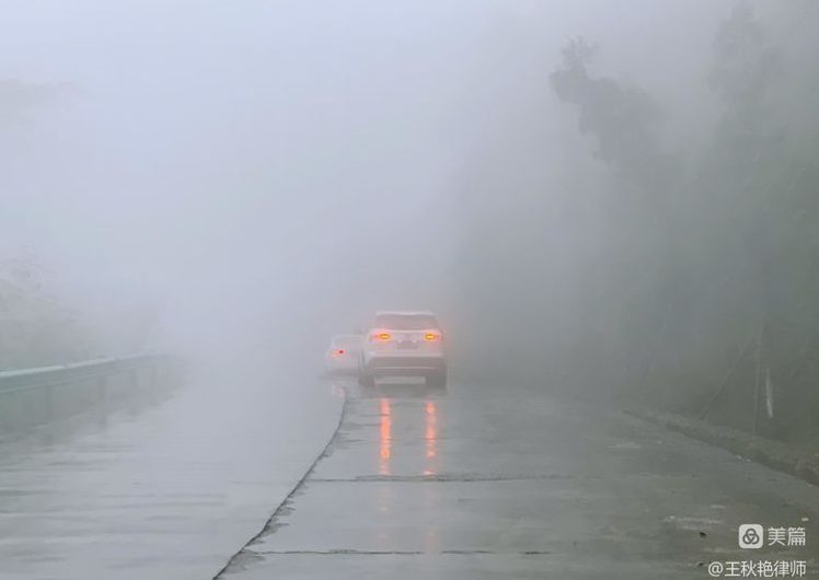 高德地图上显示出来的路线,像是无数个英文字母“S”大小写串联了起来,而且山顶雾气非常大,需要打着双闪,加倍的小心,在浓雾路段,前后车即便是紧紧跟随,也只能看到双闪的灯光,看不到车辆的。
