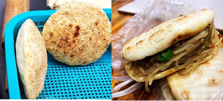 其实,鼓气馍就是鼓气饼,之所以鼓气,主要是因为放在馍中的面心。这个面心是用香油、五香粉、精盐等拌好后放进生面中,在烤馍的过程中,由于馍两面受热,面心膨胀,馍便向上鼓起,烤熟后就成了一面平,一面鼓成一个大圆包的“鼓气馍”。用刀子划开烤馍,夹上肉、菜、鸡蛋等,吃起来又香又脆,有点儿类似于肉夹馍,只不过这个馍是鼓着肚子而已。