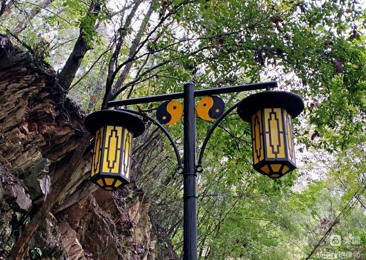 自然景观有香溪、镜儿湖、黑龙泉等数十处,人文景观有纯阳楼、炼丹炉、驾云桥、凌霄亭、玉皇阁、溪园、得月轩、望江楼和“香溪八洞”等,可以说是一处融道教文化和自然景观于一体的园林式景区,就连景区的路灯都带着八卦的图案呢!