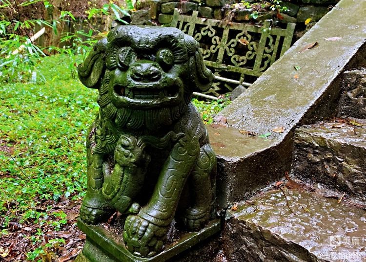 拍到了一对小石狮,都披着绿苔藓衣服,憨态可掬的对视着。痴迷于紫砂壶的我,第一感觉竟然是:这雕像的材料,不会是紫砂中的墨绿泥吧?
