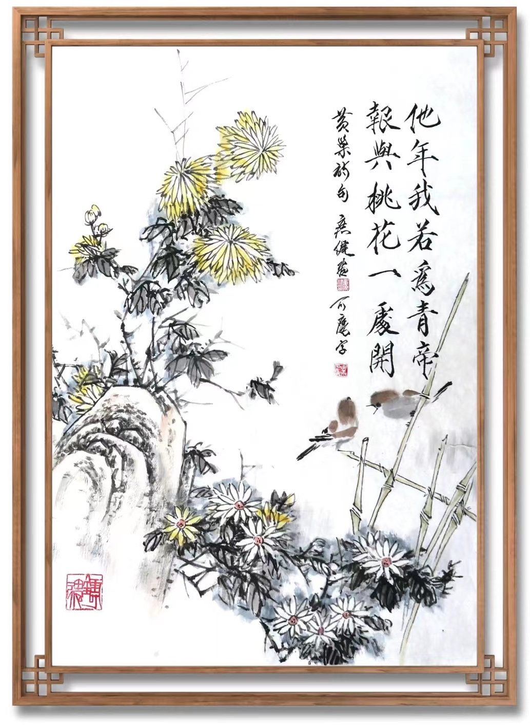 《寒雀菊花图》绘画毕庶健。
