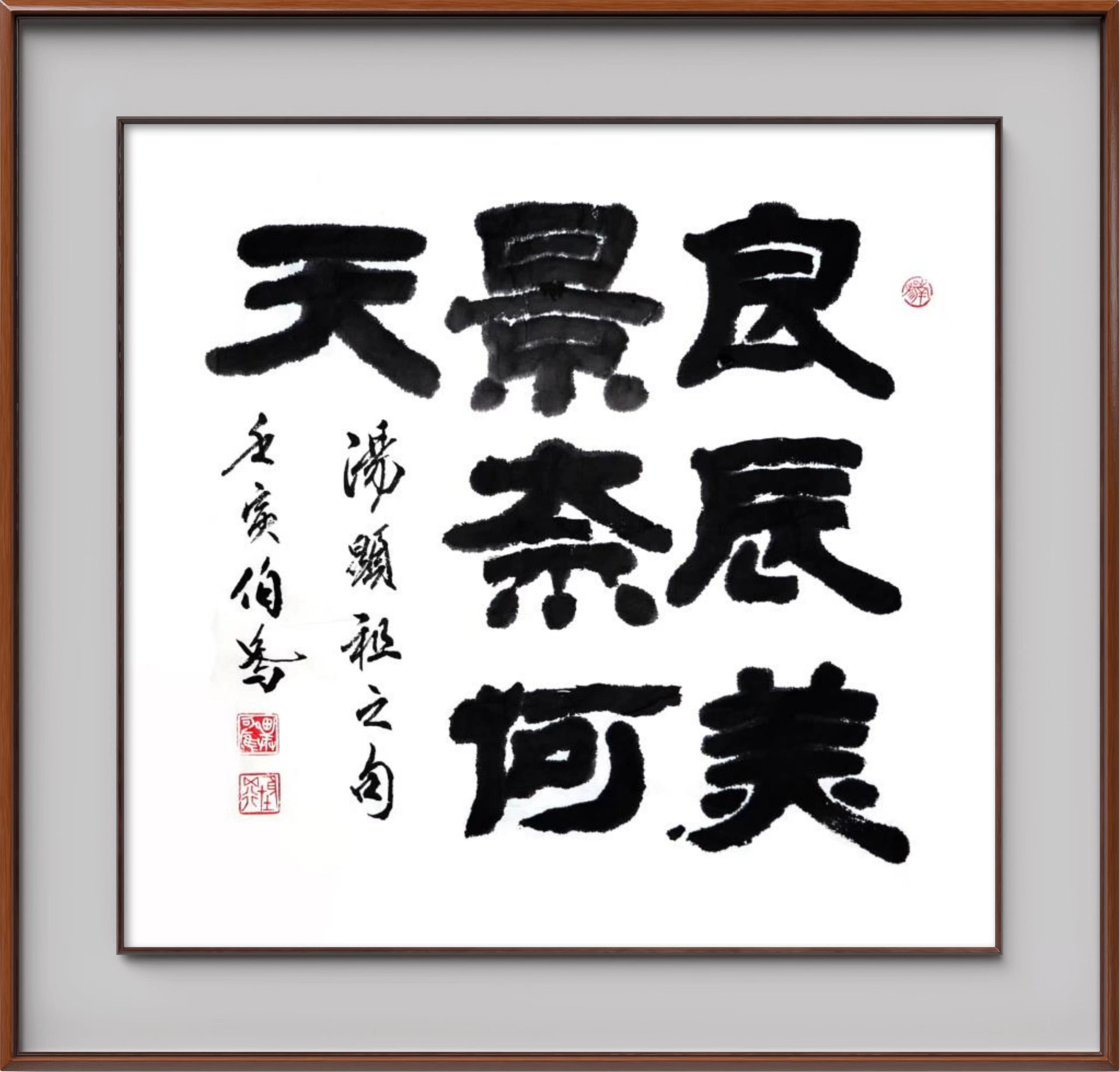 为尚善重阳节聚会题写隶书标题:良辰美景奈何天