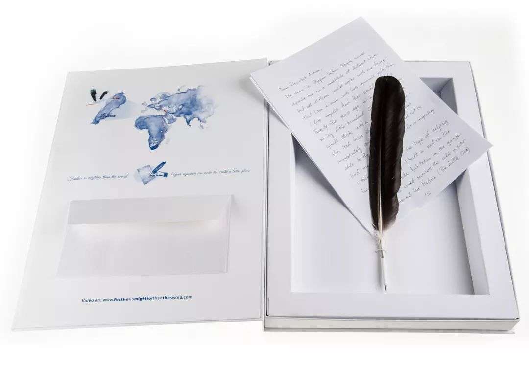 在信封里,老人还装进了一根阿克留下的羽毛。