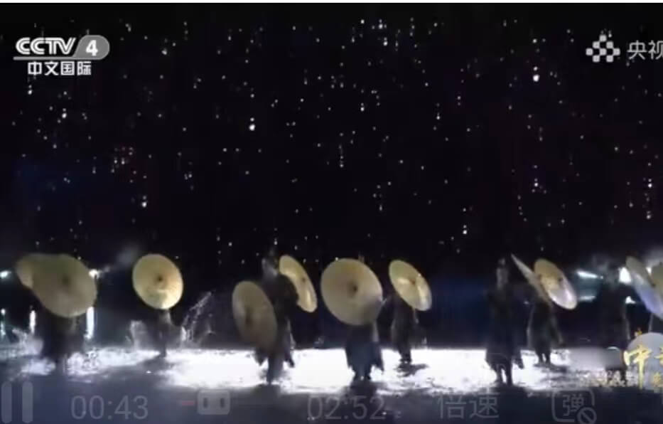 凌波微步这种只存在于武侠传说中的梦幻绝学,居然被大央视的舞蹈演员展现在我们的眼前,他们或成群,或结队,在水花和水珠中翩跃如龙,脚尖踢起的串串水珠,在五彩灯光的透视下,晶莹迷幻。