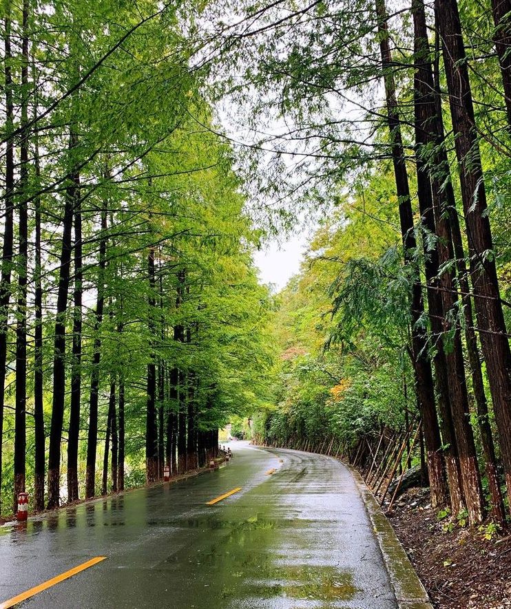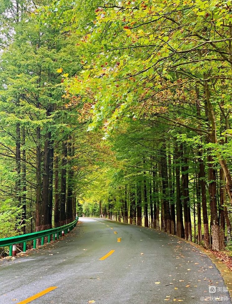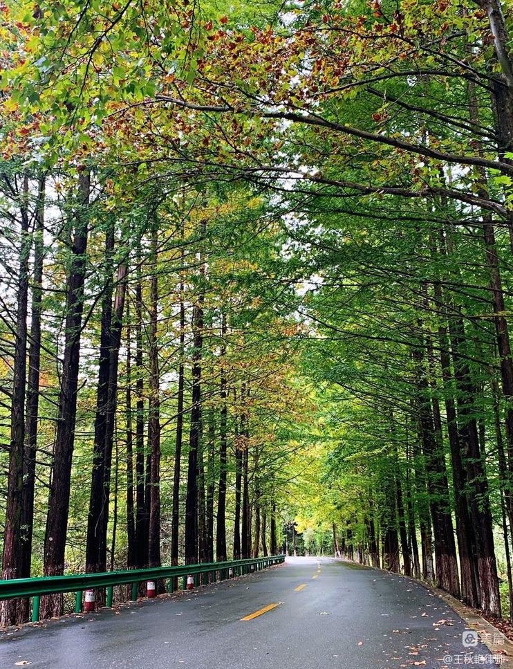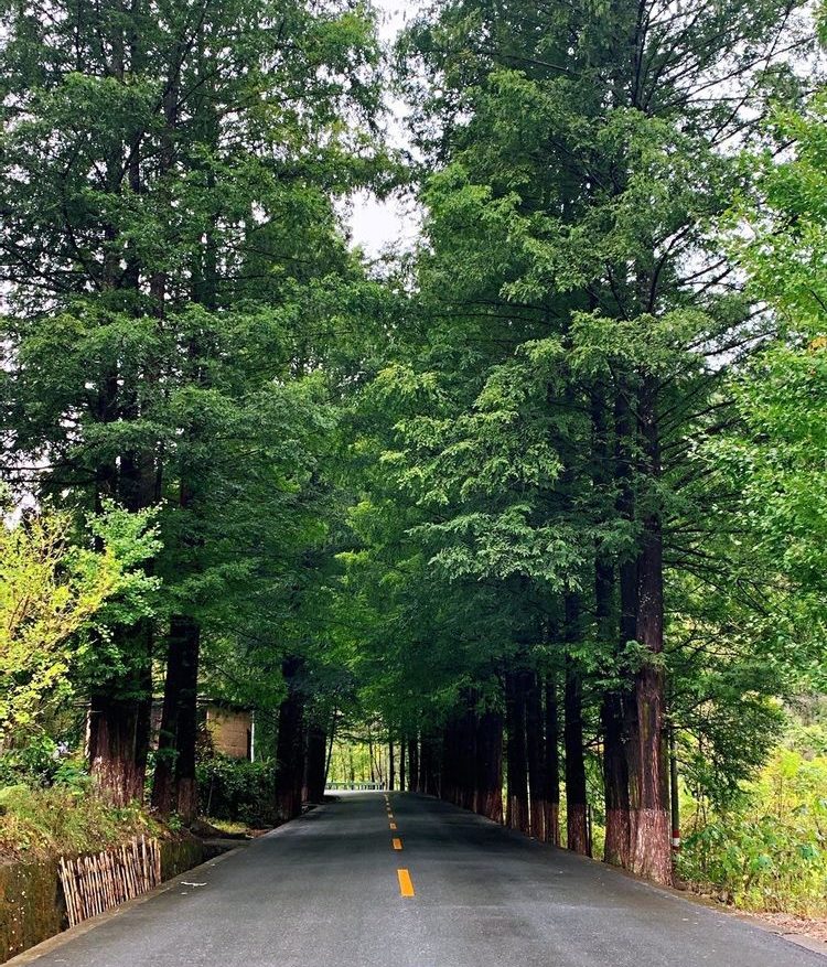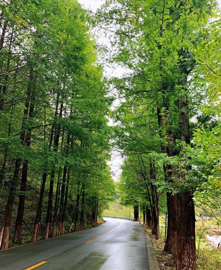 两侧都是高高大大的树木,松树、柏树、银杏、梧桐居多。因了好的气候和生长环境,两侧的树木都肆意地生长,在半空中枝叶交织在一起,给整个山间公路都打起了伞。