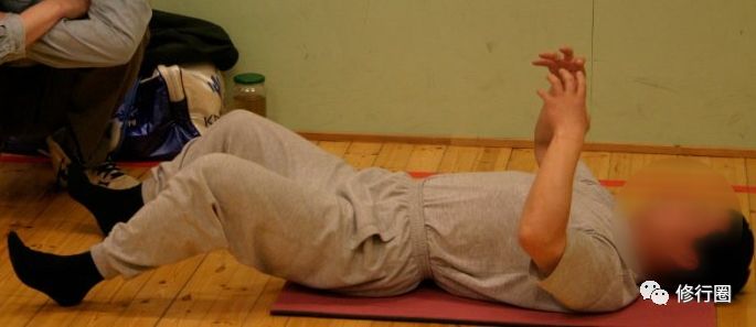 上式有脊椎、骨病、脏器不好的,效果较好。要用点力才能并好,内收是调整跨部并带动上半身骨骼放松的髋关节的膝盖内收是调整跨部髋关节的,并带动上半身骨骼放松的,不用力就被手给掰开了,手要用力,不然上半身重力就落到腰上了,对骨骼起不到应有的放松作用。